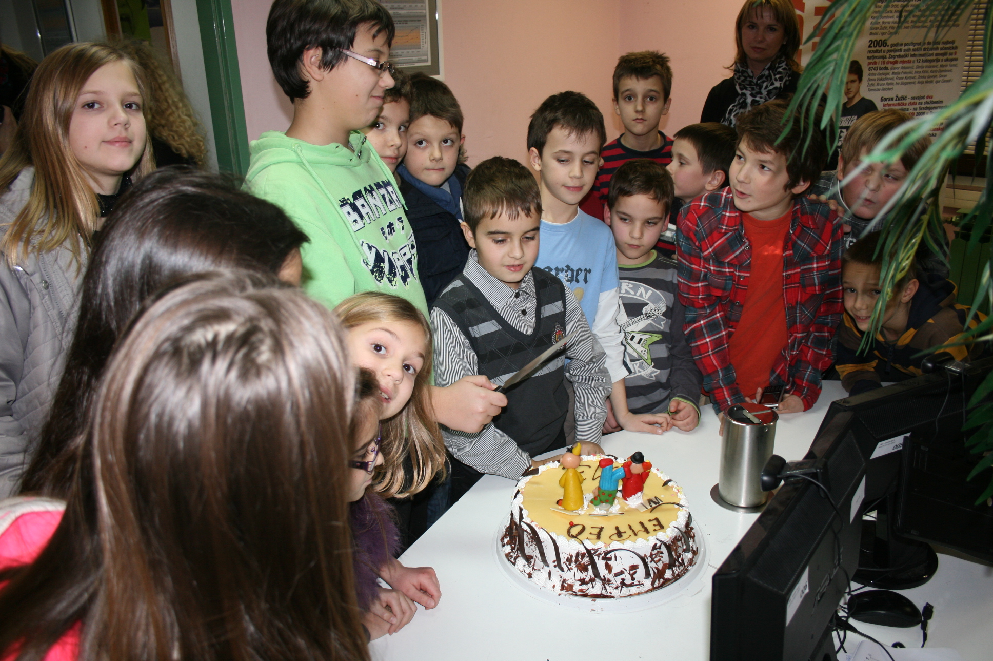 Vesela i vrijedna ekipa je marljivo radila, i u prizemlju i u željezničkoj modelarnici. U stanci je uživala, i na kraju tortom proslavila svoje sudjelovanje. Tortu je prerezao Dominik Fistrić, sada učenik 7.r i peterostruki državni pobjednik (kojemu su još uvijek greškom organizatora upisane samo tri pobjede). Dominik je inače jedini ostvario sve pobjede na natjecanjima za učenike razredne nastave, ukupno nanizavši osam pobjeda, četverostruku na olimpijadi i istu takvu na programerskoj ligi MINI VIJUGA. Pri rezanju torte pomagao mu je Dorijan Lendvaj koji je dosad pobijedio na svim natjecanjima za učenike razredne nastave na kojima je sudjelovao, a i dokazano zna pridržavati ruku koja drži nož za rezanje torte. Rezanje je potrajalo, bilo je i poziranja za TV BOŽO, Dorica Lendvaj je donijela životnu odluku dok je naša mala torta začas našla put vena i aorta. Dominik je odlučio obračunati sam sa sobom, nije mu se dopalo što je dubio na glavi nasred torte.