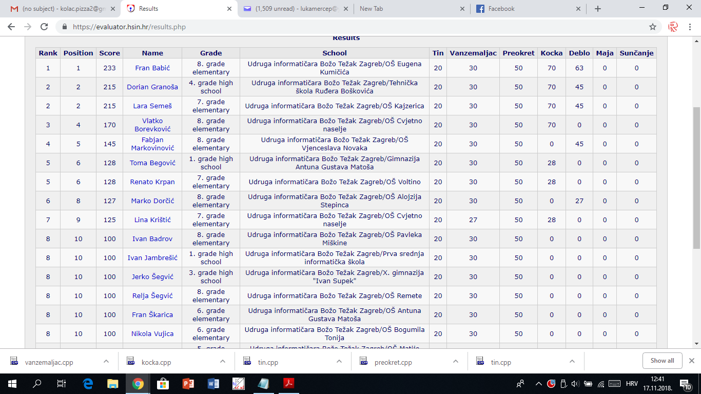 Treće kolo natjecanja HONI održat će se u subotu 15. prosinca. Nastup naših članova organizira se na isti način kao i u prethodnim kolima. Zbog skučenog prostora i nedovoljnog broja mjesta, neki pozvanici natjecat će se kao i u prva dva kola, i u hodniku ili uredu, i to uz upotrebu vlastitih prijenosnika.