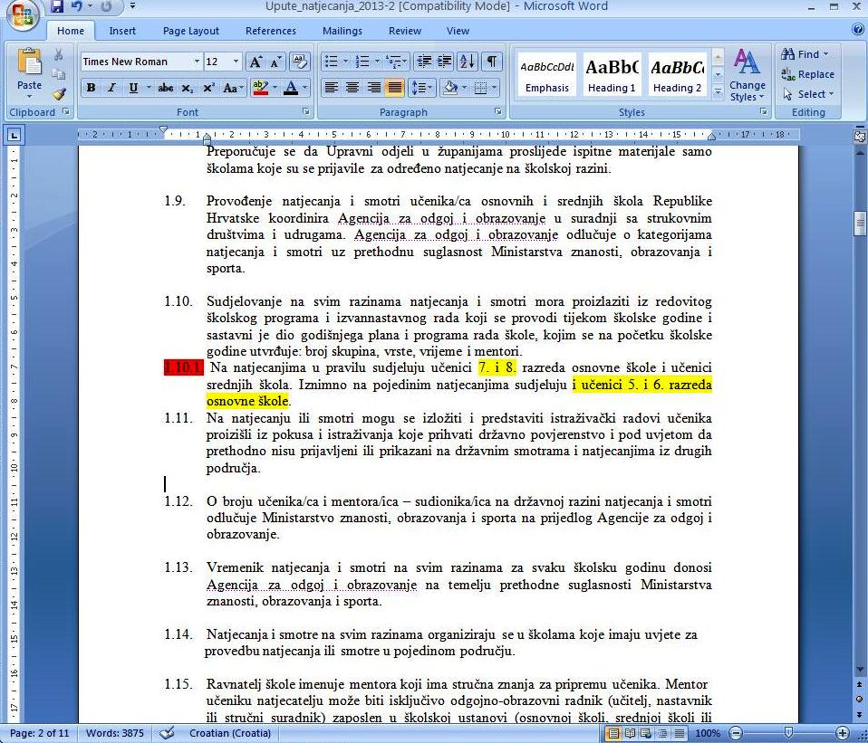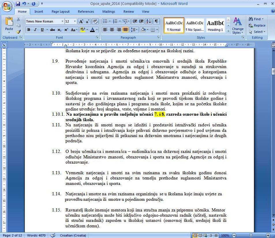 Agencija Ministarstva obrazovanja donijela je krajem 2012. upute po kojima se natjecati mogu samo učenici viših razreda
